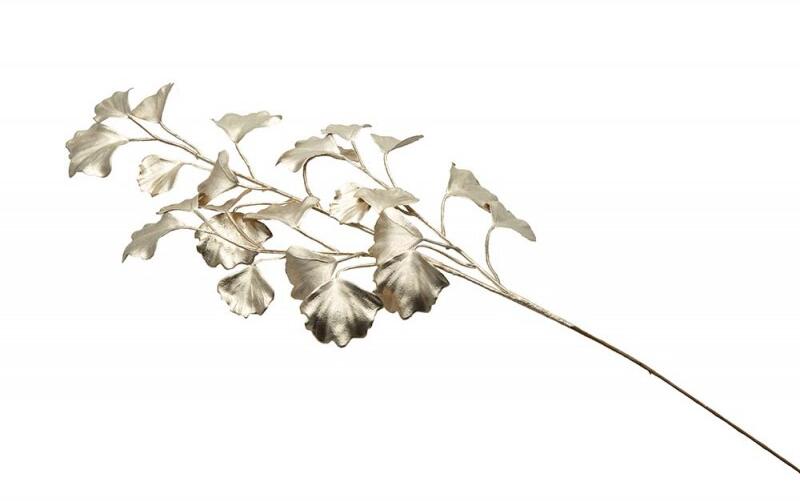 Gally - Ginkgo biloba Champagne Ez a stílusos dekoráció lenyűgöz kifinomult dizájnjával és fényűző arany felületével. Ideális vázák, dekorációk díszítésére vagy önálló dekorációs elemként. méret : 61 cm