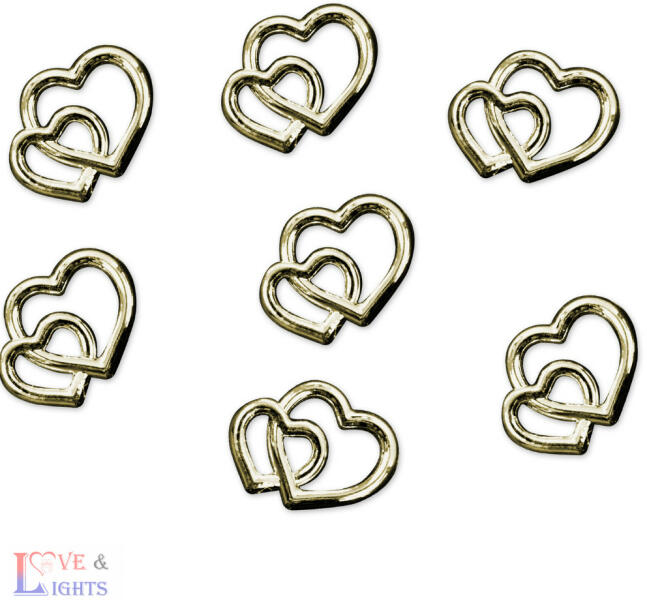 Arany színű 1 cm-es szívecske dekoráció. Egy csomagban 25 db szívecske található. Amennyiben többet szeretne vásárolni, mint amennyi a raktárunkban megtalálható, úgy a szállítási idő 1-2 hét.