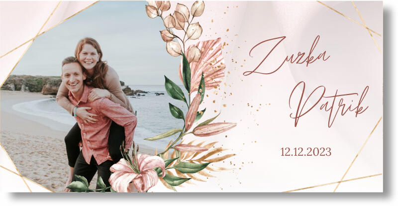 Az esküvői banner segítségével minden esküvőt személyessé varázsolhat. Válassza ki a saját fotóját a párról, adjon hozzá neveket, dátumot és kezdődhet az esküvői fogadás! Ilyen módon olyan egyedi és felejthetetlen pillanatot teremthet, amelyet minden pár élvezni fog. A banner könnyű és könnyen felakasztható. A merész színárnyalatok vidám hangulatot kölcsönözn