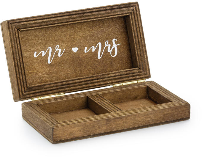 Doboz jegygyűrűkre - Mr & Mrs mennyiség: 1db méretek : 10 x 5,5 cm Ez a fából készült dobozka kiváló jegygyűrű tartó . Tökéletes kiegészítője lehet minden esküvőnek .