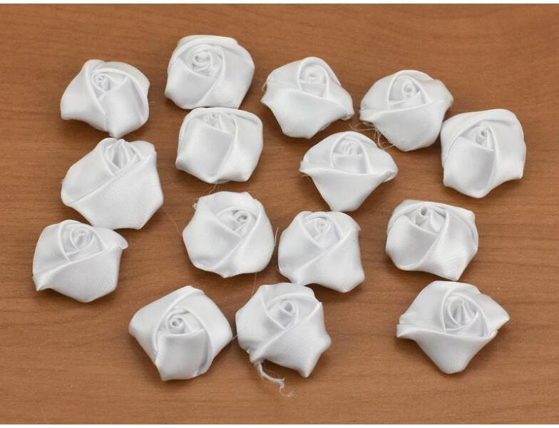 Szatén rózsafej dekoráció. Díszíthető vele csokor, asztali dísz, koszorú, egyéb készítmények. 2cm
