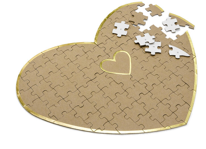 Vendégkönyv - Puzzle szív mennyiség: 1 db méretek: 45 x 35,5 cm Tökéletesítse az esküvőjét ezzel a különleges szív alakú vendégkönyvvel . A könyv 85 puzzle darabkát tartalmaz, amire a vendégek egyesével aláírhatják magukat.