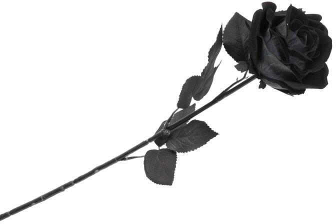 Fekete rózsa 65 cm-es száron A valósághű dekoráció tökéletes kiegészítője kísérteties Halloween estéjének , egy csipetnyi gótikus bájt adva hozzá. A művirágok tökéletesek díszek készítéséhez, asztaldíszítéshez vagy csokor részeként. méret : 65 cm