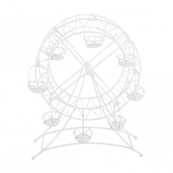 Dekoráció - Fehér óriáskerék Adjon egy csipetnyi eleganciát belső teréhez ezzel a gyönyörű, fehér fém óriáskerék díszítéssel . Ez az igényesen kidolgozott darab tökéletes kiegészítője minden otthonnak. Esküvői asztal díszítésekor vagy Baby Shower ünneplésekor is használhatja. A fém óriáskerék tökéletes ajándék lesz a vintage stílus szerelmeseinek. méret