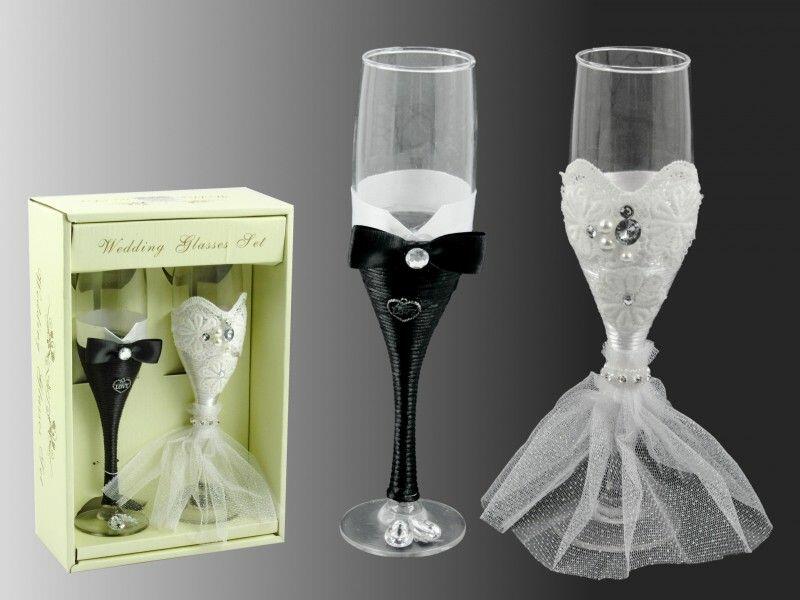 Esküvői pezsgőspohár 2db 27cm 6094 Esküvői pezsgőspohár 2db 27cmBefoglaló méretek 19x9x28 cmAnyaga üveg, textil