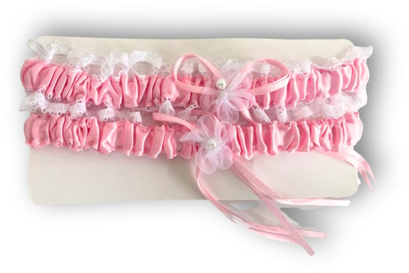 Esküvői harisnyakötő készlet - Rózsaszín 2 db Az esküvői harisnyakötő ideális kiegészítője minden menyasszonynak . Ezeket a harisnyakötőket finom csipkerészletek díszítik, és puha szatén felülettel rendelkeznek a kifinomult megjelenés érdekében. Elasztikus kialakításuknak köszönhetően tökéletesen alkalmazkodnak az alakhoz, és egész nap a helyükön maradnak. A r