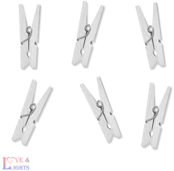 Fehér 3 cm-es facsipesz, mely jól jön fotófal vagy ültetési rend tábla kialakításához. Egy csomagban 20 db csipesz található. Amennyiben többet szeretne vásárolni, mint amennyi a raktárunkban megtalálható, úgy a szállítási idő 1-2 hét.