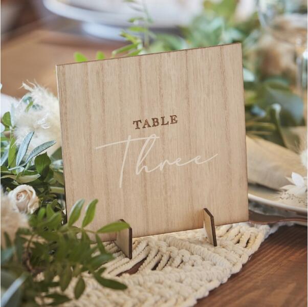 Asztal jelölés - Fa Ezek a fából készült esküvői asztalszámok lehetővé teszik, hogy vendégei könnyen megtalálják a helyüket. Mindegyik szám stílusosan fogja megjelölni vendégei asztalát, és egy csipetnyi eleganciát és szervezettséget kölcsönöz az esküvői hangulatnak. Minden csomag 1-től 12-ig terjedő jelöléssel ellátott fatáblákat tartalmaz. A finom dizájn bá