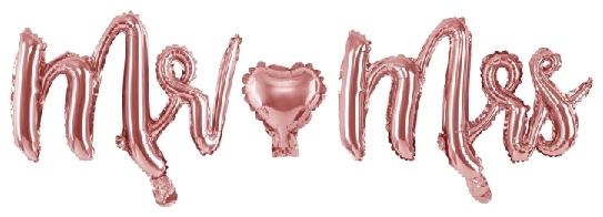 fólia léggömb szett , Mr és Mrs. , rosegold méret Mr. kb. 62,5 x 31,5 cm méret Mrs. kb. 62,5 x 31,5 cm méret szív kb. 25 cm