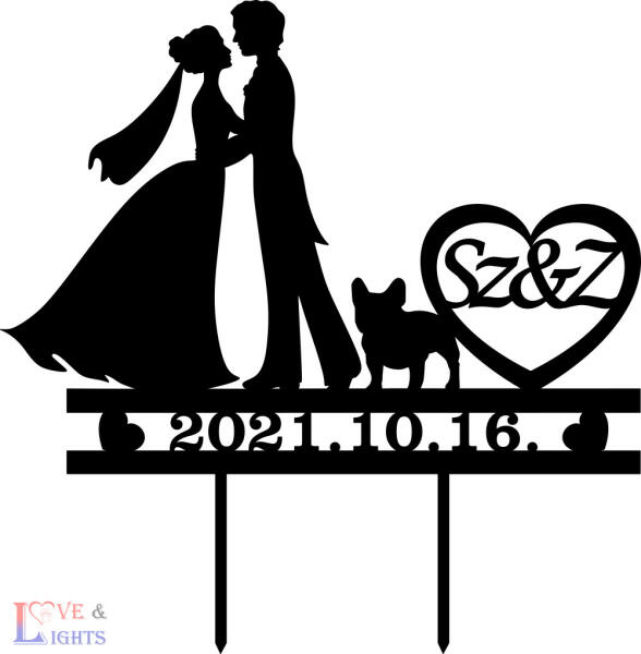 Esküvői tortadísz buldog kutya mintával Különböző anyagból készítünk tortadíszeket, így mindenki megtalálhatja azt, amelyik a legjobban passzol a dekorációhoz, elképzeléseihez. Az esküvő után is szép emlékek örzője lesz. A könnyebb tároláshoz készítünk tortadíszeinkhez talpat - kérés esetén. Így használat után letörhető a beszúró vége, és egy ellipszis