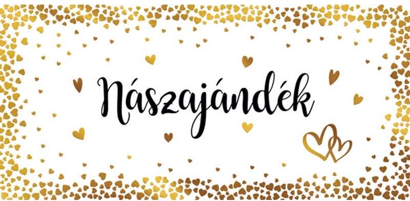 Díszboríték 44 Nászajándék Arany pici szívek 18,5x9 Termékjellemzők: Anyaga: papír Alkalom: Esküvő Kinek ajánlott: Bárkinek