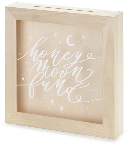 Esküvői pénzgyűjtő doboz - Honeymoon fund Használja ezt a pénzgyűjtő dobozt az esküvői díszítés praktikus dekorációjaként, vagy kezdjen el spórolni álmai nászútjára még ma!! méretek: 6 x 30 x 30 cm anyag: fa, plexüveg