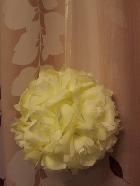 selyem rózsagömb, ekrü, 25 cm