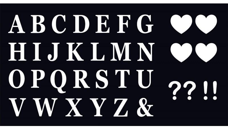 Matrica készlet - Fehér betűk + jelek Készítsen egyedi táblát öntapadó betűkkel . Ezek a betűk ideális megoldást jelentenek üdvözlő táblákhoz, személyre szabott dekorációkhoz vagy helyek kijelöléséhez különböző rendezvényeken. A kiváló minőségű fának és a precíz megmunkálásnak köszönhetően elegáns hatást és egyedi megjelenést kölcsönöz rendezvényé