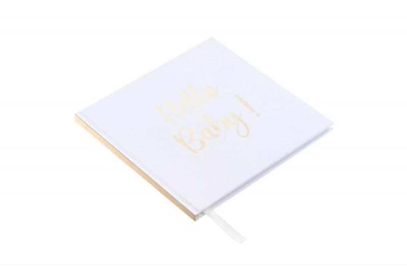 Fehér vendégkönyv - Hello Baby 20,5 x 20,5 cm A "Hello Baby" feliratú vendégkönyv eredeti módja annak, hogy megörökítse szerettei szép emlékeit, kívánságait gyermekszületés vagy Baby Shower alkalmából. Ez az elegáns könyv , "Hello Baby" felirattal sok helyet kínál az üzeneteknek, tanácsoknak vagy gratulációknak. méret : 20,5 x 20,5 cm