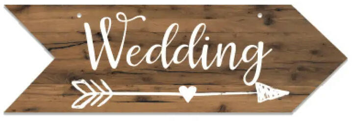 Esküvői információs útba igazító tábla, Weddig felirattal Természetes madzaggal felakasztható Színe : antikolt fa mintás barna Anyaga : Fa Mérete :25 x 8 cm Madzaggal felfüggeszthető esküvői nyíl alakú információs plakett, Weddig felirattal. Dobja fel az esküvője helyszínét egy praktikus irány táblával. Természetes madzaggal felakasztható Színe : antikolt fa mintás