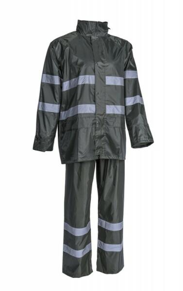 200 g/m2 vastag, 100% poliészterre mártott lágy PVC5 cm széles fényvisszaverő csík: 2 a test körül, és 2 a karokon + 2 a lábszáronaz alapanyag vízállósága: 2000 mmhegesztett varrásokkétrészes ruha (kabát + nadrág), gallérba rejtett, zsinórral állítható...