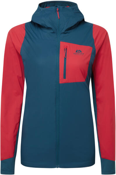 Hibrid női kapucnis kabát, ideális középrétegként, nagy légáteresztő képességgel a hegyekben való gyors mozgáshoz, legyen szó hegymászásról vagy síelésről.