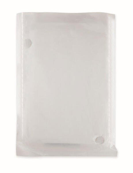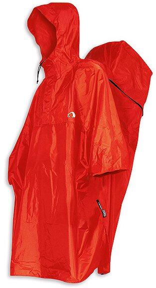 Biológiailag lebomló poncsó Összehajtható kapucnis esőponcsó, biológiailag lebomló anyagból, szintén biológiailag lebomló tasakba csomagolva.