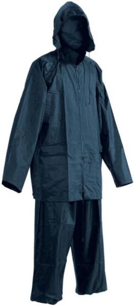Orkán hatású kétrészes esővédő öltöny Lehegesztett varratokkal rendelkezik, belső oldala PVC borítású. Praktikus tokkal szállítjuk. A 3/4-es kabát csuklyája a gallérba rejthető, mérete zsinórral állítható. Nagyméretű mellső zsebei hajtókával ellátottak, hogy megakadályozzák a víz bejutását, míg az ujjak végén patenttal szabályozható a bőség. A PVC bevonat