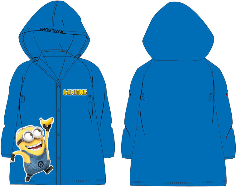 Gyerek esőkabát - Minyonok, kék Az esőkabát megbízhatóan védi gyermekét az esőtől és a rossz időjárástól. A Minyonok motívummal ellátott gyerek esőkabát lesz a megfelelő kiegészítő az őszi és esős napokon. Mennyiség: 1 db Anyag: 100 % PVC Szín: kék Hogyan válasszuk ki a megfelelő méretet? Ebben segítenek a következő méretek: 3 - 4 év - 98/104 cm 5 - 6 év - 11