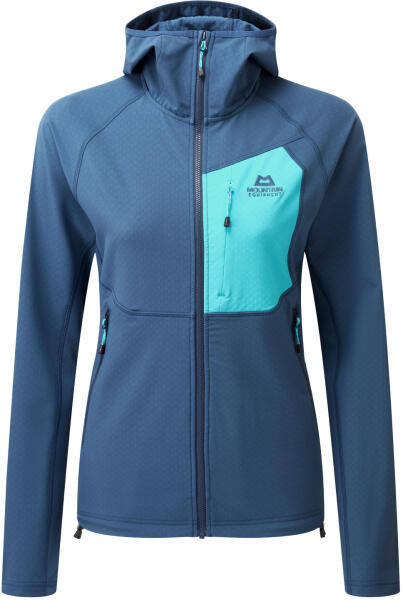 Könnyű, kényelmes és sokoldalú női softshell kabát kapucnival, alkalmas hegymászásra, alpinizmusra és alpesi turizmusra.