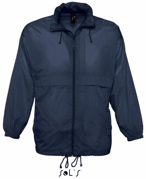 100% 210T nylon. Vízlepergető, rejthető kapucni húzózsinórral. Két cipzáras zseb. Gumis kézelő. Szellőzőnyílások. Húzózsinórral állítható derékrész. A dzseki kis csomaggá hajtogatható.