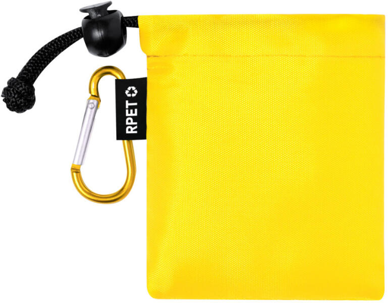 Átlátszó LDPE poncsó gyerekeknek. RPET poliészter hordtasakban, megkülönböztető RPET címkével és alumínium karabinerrel.