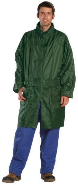 Poliamidra mártott lágy, rugalmas PVC, 0,18 mm vastag, varrott plusz hegesztett, vízhatlan szellőzőnyílás a háton, gallérba rejthető kapucni, vékony, nagy szakítószilárdságú víz- és szélálló anyag, hidegállóság: -20°C, két külső zseb, gumírozott...
