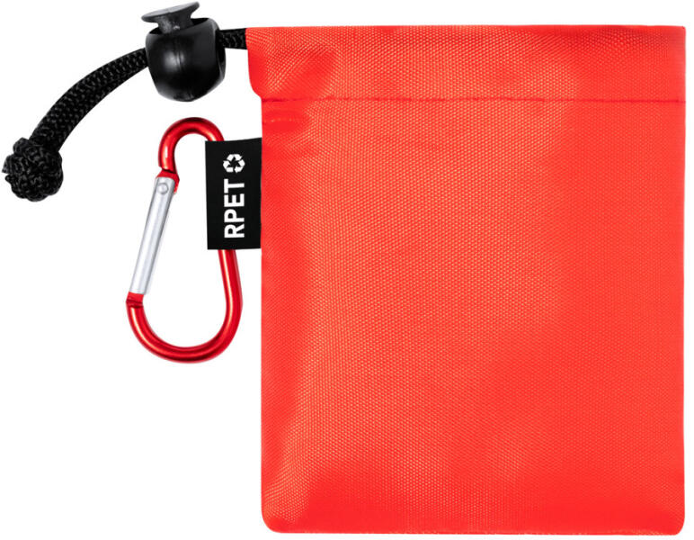 Átlátszó LDPE poncsó gyerekeknek. RPET poliészter hordtasakban, megkülönböztető RPET címkével és alumínium karabinerrel.