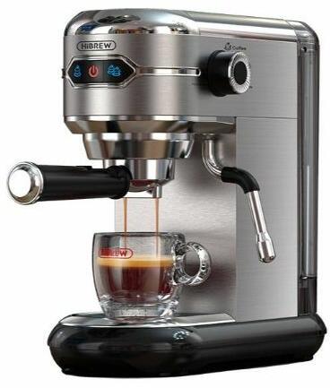 Félautomata kávéfőző HiBREW H11 Nem tudja elképzelni a napját egy csésze forró, aromás kávé nélkül? A HiBREW H11 kávéfőző nélkülözhetetlen lesz otthonában! Segítségével könnyedén készíthet ízletes cappuccinót, eszpresszót vagy tejeskávét. A készülék nyomása 19 bar, tejhabosítóval van felszerelve. Nagyon gyorsan felmelegszik, és automatikusan kikapcsol, ha v