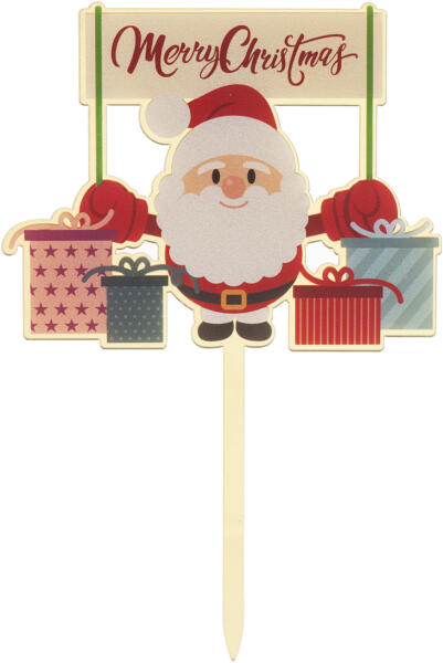 Tortadísz - Merry Christmas Santa Milyen eredeti torta ! Főleg a karácsonyi, a tökéletességhez már csak egy tortadísz hiányzik Merry Christmas felirattal. Remekül fogja díszíteni a tortát természetes motívummal. darab: 1 drb méret: 16,5 x 10 cm anyag: PVC