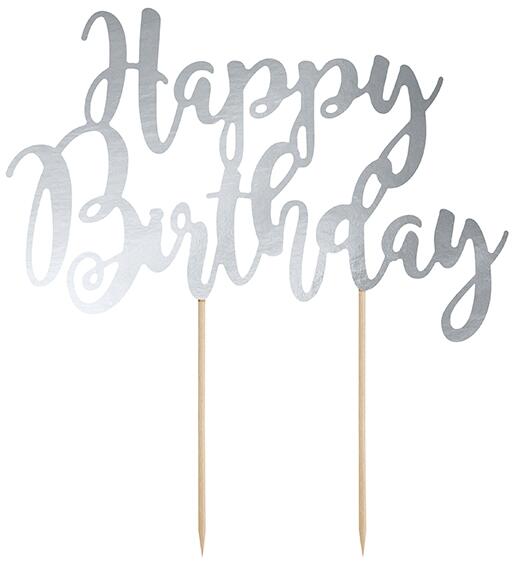 Tortadísz - "Happy Birthday" - ezüst mennyiség: 1 db méret: kb. 22,5 cm