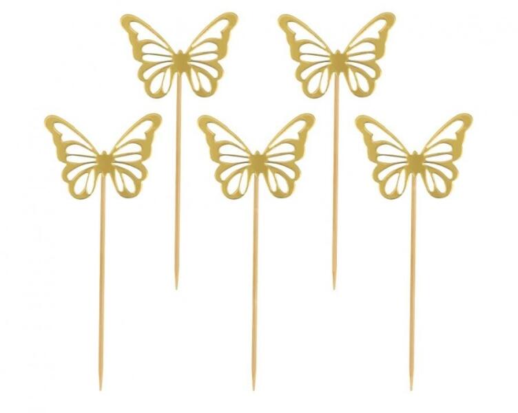 Butterfly Gold, Pillangó díszítő pálca 12 db-os 12 db pálcika/csomag Mérete: 11,5x5,5 cm Anyaga: papír