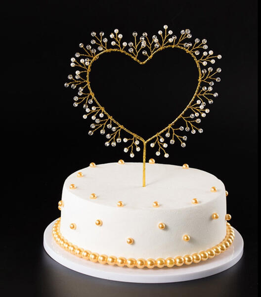 Varázsold különlegessé a süteményeidet ezzel a ragyogó, romantikus tortadísszel, amely garantáltan elbűvöli a vendégeidet. Aranyszínű, szív alakú tortadísz egyedi és elegáns megjelenést kölcsönöz bármilyen alkalomra készített tortának. A finoman kidolgozott ágakon csillogó kristályok és gyöngyök díszelegnek, amelyek kifinomult ragyogást nyújtanak az ünnepi pill