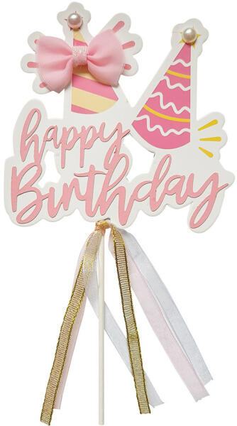 Torta dekoráció , torta beszúró, kislányos mintával és Happy Birthday felirattal , mellyel Te is egyszerűen díszítheted az elkészült süteményeket és tortákat. Tulajdonságok: Anyaga: papír A beszúrók mérete: - A beszúrók magassága: 22 cm