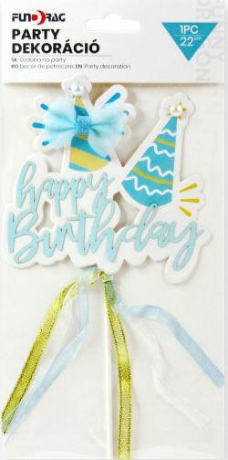 Torta dekoráció Happy Birthday kék 22cm 632814 Befoglaló méretek 13x1x27 cmAnyaga papír