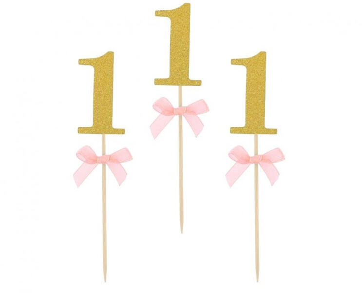 Pink 1st Birthday díszítő pálca 10 db-os Csillámos! 10 db pálcika/csomag Anyaga: papír