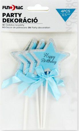 Torta dekoráció Happy Birthday kék csillag 4db 12,5cm 622204 Befoglaló méretek 11x1x19 cmAnyaga papír