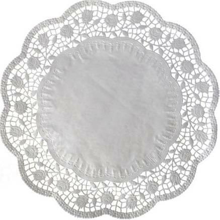 Dekoratív csipke kerek, fehér. Átmérője 18 cm, 100 db-os kiszerelésben.