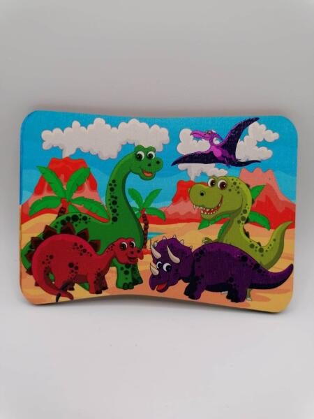 Tortamágnes - dinoszauruszok Készíts szülinapi bulit, és ne felejtsd el a tortát! A dinoszauruszok dizájnjában található mágnes szép kiegészítője lesz minden gyerektortának, csak ragassz egy fából készült pálcikát a hátára. A mágnest nem fogyasztásra szánjuk, de megtartásával gyönyörű születésnapi és ünnepi emlék lesz. Méret : M 9 x 0,4 x H 12,5 cm Anyaga : fa