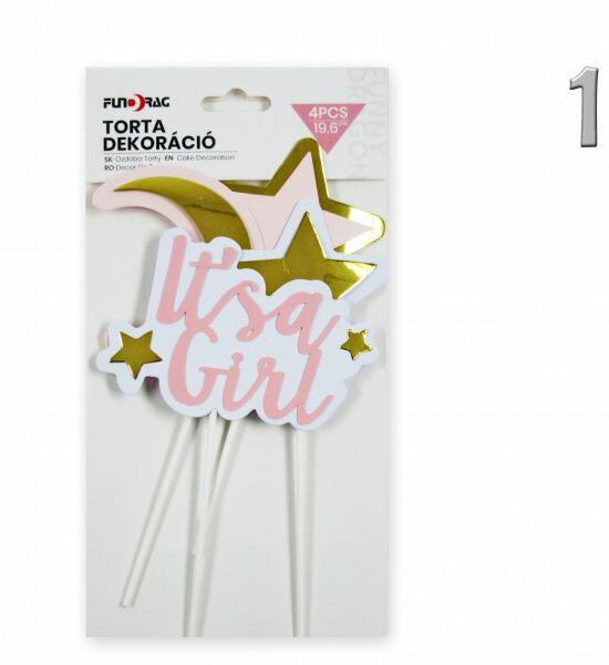 Tortadísz Girl/Boy rózsaszín/kék 4db 20cm 627506 2féle 2féle típus választhatóBefoglaló méretek 13x1x25 cmAnyaga papír