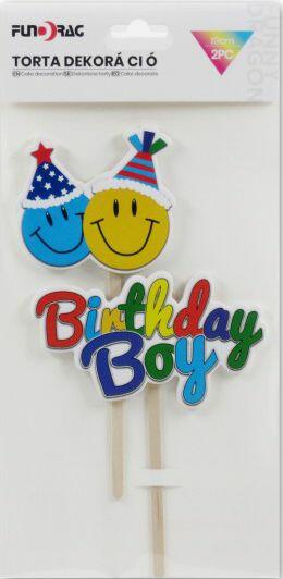 Torta dekoráció szett Birthday boy smiley 2db Befoglaló méretek 15x0.5x29 cm