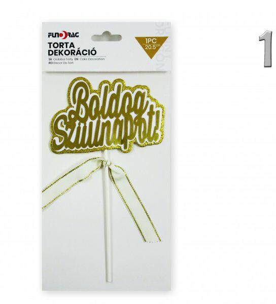 Tortadísz Boldog Szülinapot arany/gyöngyház 20,5cm 627629 2féle 2féle típus választhatóBefoglaló méretek 13x0.5x27 cmAnyaga papír