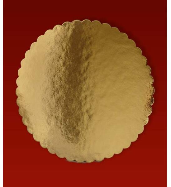 Tortalap díszített széllel, arany színű. Átmérője 36 cm.