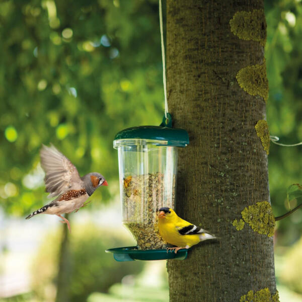 MILA 98%-ban újrahasznosított madáretető földimogyoróhoz, zöld/fekete 98%-ban újrahasznosított műanyag madáretető Keskeny etető réseknek köszönhetően nagyobb szemes takarmány és golyó formájú madáreleséggel kompatibilis Felfüggeszthető, de egy 2cm átmérőjű rúdra illesztve bárhová leszúrhat a kertben 22 x 6 x 6 cm
