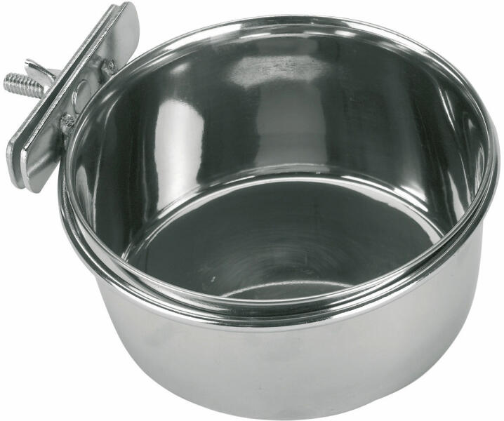 Rozsdamentes, kalitkára rögzíthető tartóba helyezhető, krómozott fém tál madarak részére. Akasztható, így használata rögzítése igen egyszerű. A tál a tartóból kivehető. Krómozott.