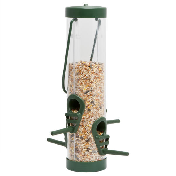 Március 5. érkezéssel várható a raktárunkba Eladási egység: 1db A hideg téli hónapokban, mikor hó borítja a tájat, fontos az itt maradt madaraknak a megfelelő táplálékhoz jutás. Ezzel a madáretetővel Ön is hozzájárulhat a túlélési esélyük növeléséhez. Akasztóval 4 etetőnyílással Anyaga: műanyag Teljes méret: 60 x 250 mm Űrtartalom: 0,56 l Tartozék: 4 db etet