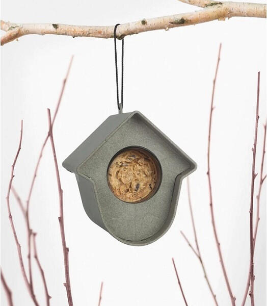 Madáretető újrahasznosított EVIE EVIE 100%-ban újrahasznosított madáretető, szürke, szürke előlappal 15x13,5x17 100% újrahasznosított műanyagból készült, felfüggeszthető, vagy falra rögzíthető madáretető Dekoratív dizájn Helyezhető bele mogyoróvaj, szemes eleség és golyó formájú madáreleség is. 15*14*17 cm 200 g