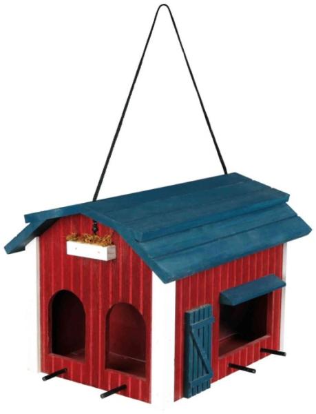 Fa, függeszthető madáretető. 4 nyílással, 2 külön adagoló kamrával. Az eleség tiszta és száraz marad. 6 leszállóhely Eltávolítható tető a könnyű feltöltéshez.
